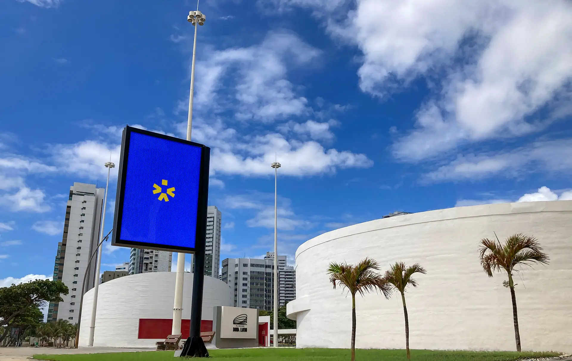 Super Totem Boa Viagem une orla e Parque Dona Lindu, alcançando pedestres e 1,3M de veículos/mês com grande impacto e presença.